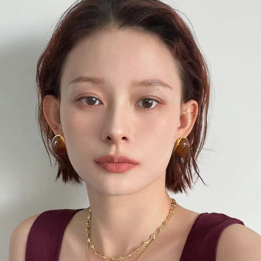 A2廠 韓國韓版暈染橢圓形C型銀針耳環「HE24551」25.01.W1 批發折扣@洽客服