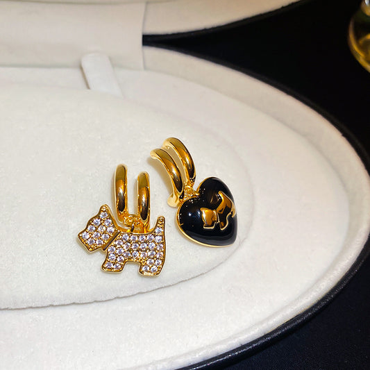A2廠 韓國韓版鋯石小狗愛心銅鍍14K金銀針耳環 批發 折扣@洽客服 25.02.W1「WE1557」