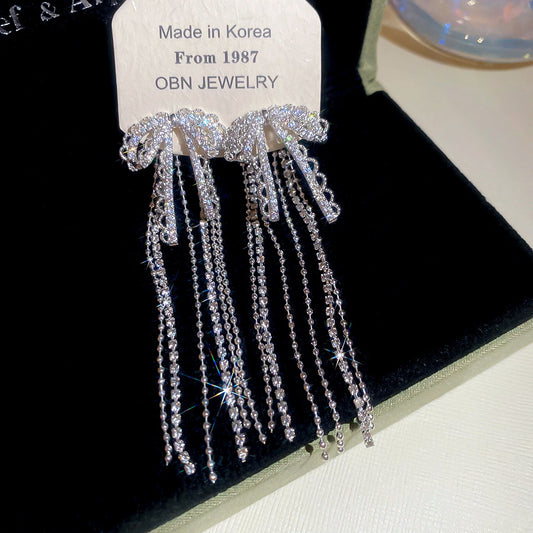 A2廠 日韓款韓國鋯石蝴蝶結流蘇銀針耳環 批發 折扣@洽客服 25.11.W4「HE28990」