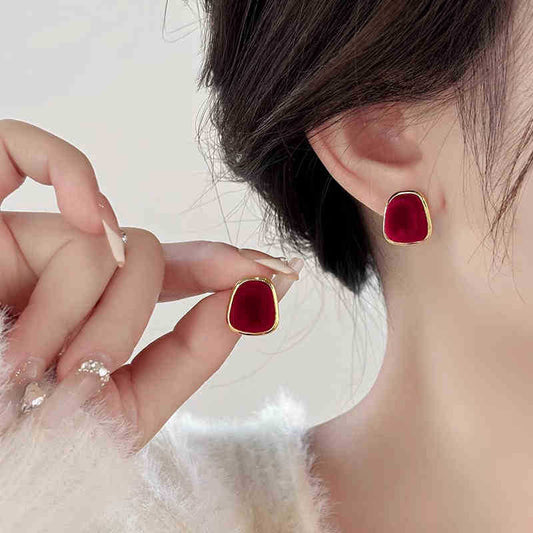 A2廠 韓國韓版酒紅幾何圓銀針耳環 批發 折扣@洽客服 25.11.W3「HE28573」