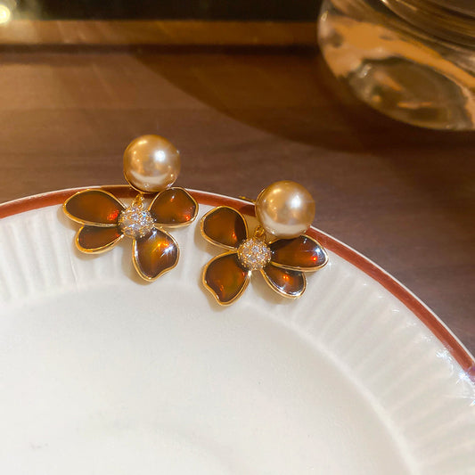 A2廠 日韓款滴油花朵珍珠電鍍18k金銀針耳環 批發 折扣@洽客服 25.11.W4「WE4955」