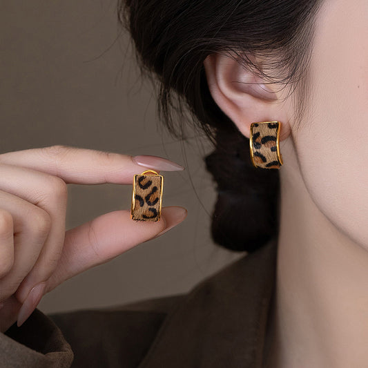 A2廠 日韓款仿馬毛豹紋幾何C型銀針耳環 批發 折扣@洽客服 25.11.W4「HE28964-1」