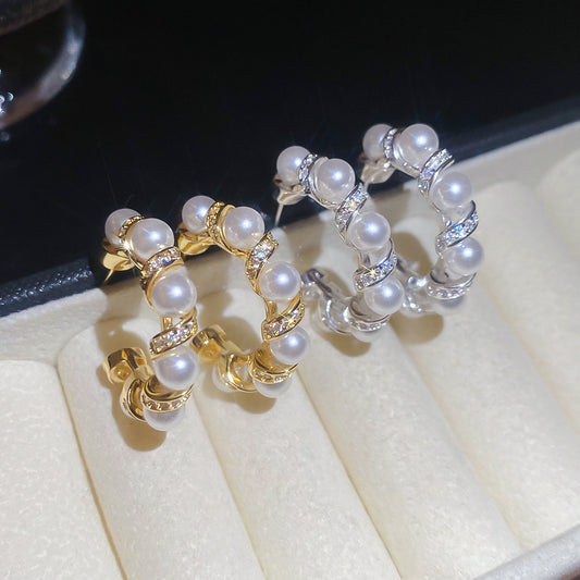 A2廠 韓國韓版鋯石花邊珍珠銅鍍真金銀針耳環 批發 折扣@洽客服 26.02.W3「HE30545」