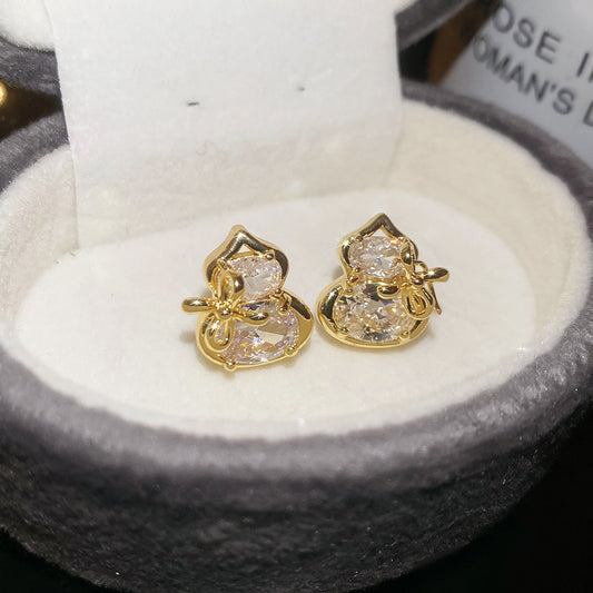 A2廠 韓國韓版鋯石葫蘆銅鍍14K真金銀針耳環 批發 折扣@洽客服 26.02.W3「HE30522」