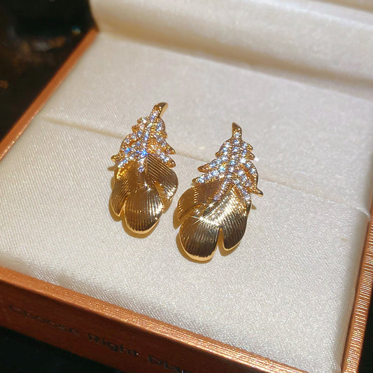 A2廠 韓國韓版鋯石羽毛電鍍18k真金銀針耳環 批發 折扣@洽客服 26.03.W1「WE5624」