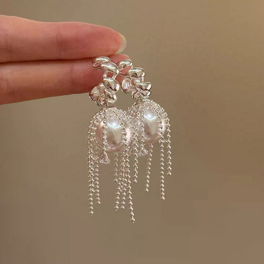 A2廠 韓國韓版鋯石流蘇珍珠鈦鋼銀針耳環 批發 折扣@洽客服 26.02.W3「HE30460-2」
