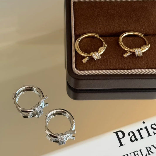 A2廠 韓國韓版鋯石打結圓形鈦鋼14K真金銀針耳環 批發 折扣@洽客服 26.02.W3「WE6145」