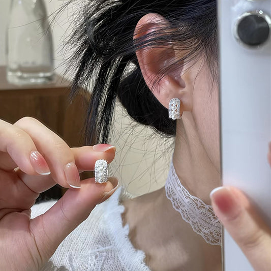 A2廠 鈦鋼|韓系鑲鑽蕾絲珍珠銀針耳環 批發 折扣@洽客服 26.02.W1「HE30382」