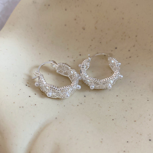 A2廠 韓國韓版鏤空圓形珍珠銀針耳環 批發 折扣@洽客服 26.03.W1「HE30878-1」