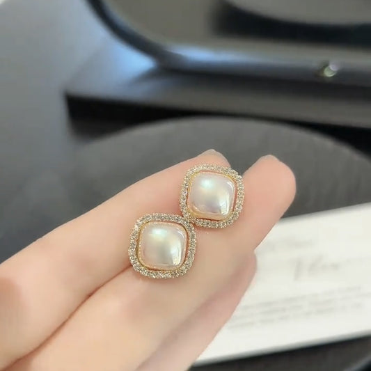 A2廠 韓國韓版優雅菱形珍珠銀針耳環 批發 折扣@洽客服 26.03.W1「HE30883-1」
