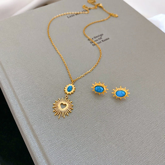 A2廠 韓國韓版太陽花綠松石銀針耳環 &項鍊 批發 折扣@洽客服 25.08.W2「TE65 TN93」