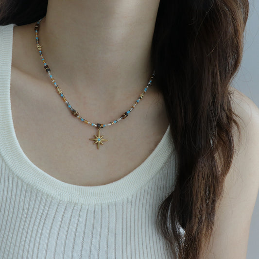 A2廠 韓國韓版水晶虎眼石串珠芒星項鍊 批發 折扣@洽客服 25.08.W4「WN1302」