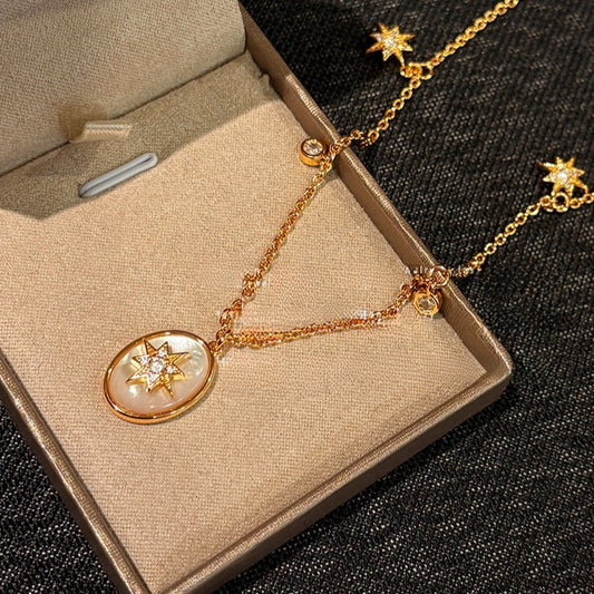 A2廠 韓國韓版淡水珍珠貝母芒星鈦鋼項鍊 批發 折扣@洽客服 25.08.W4「WN1301」