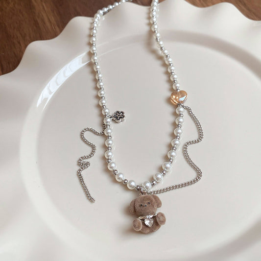 A2廠 韓國韓版鑲鑽可愛狗狗珍珠項鍊「HN7919」24.12.W4 批發折扣@洽客服