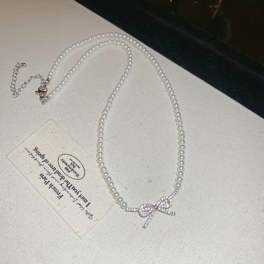 A2廠 韓國韓版鋯石蝴蝶結珍珠項鍊「HN8030」24.12.W3 批發折扣@洽客服