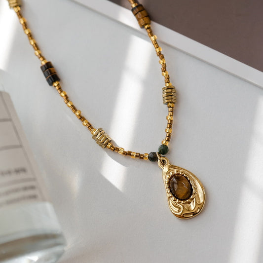 A2廠 韓國韓版人造虎眼石串珠項鍊「HN4786HN7925」24.12.W4 批發折扣@洽客服