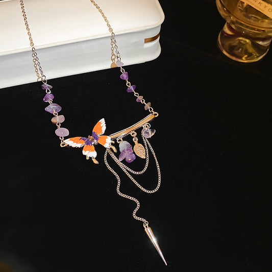 A2廠 韓國韓版鑲鑽蝴蝶樹葉流蘇項鍊「HN8063」25.01.W1 批發折扣@洽客服