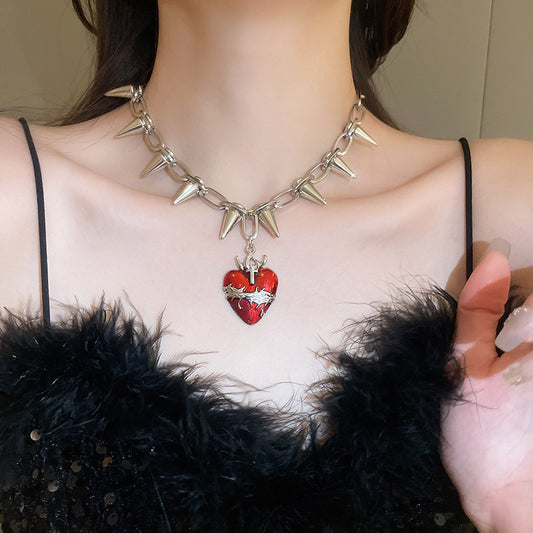 A2廠 韓國韓版鉚釘愛心吊墜項鍊「HN8061」25.01.W1 批發折扣@洽客服