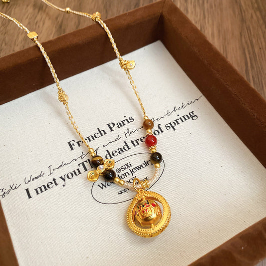 A2廠 韓國韓版沙金圓形虎眼石珍珠項鍊「HN8116」25.01.W1 批發折扣@洽客服
