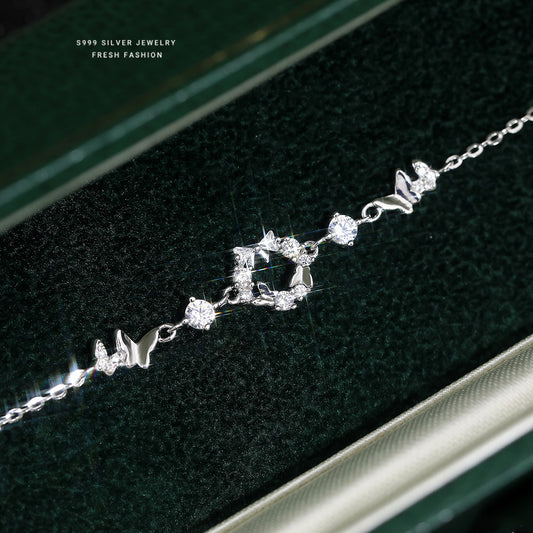 C廠 韓國韓版鑲鑽花環蝴蝶s999純銀手鍊 批發 折扣@洽客服 25.08.W2「L941」