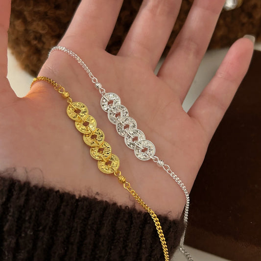 C3廠 韓國韓版招財錢幣S925純銀手鍊 批發 折扣@洽客服 25.05.W4「hsl077」