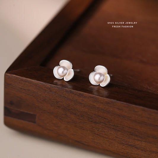 C廠 韓國韓版三瓣花珍珠S925純銀耳環 批發 折扣@洽客服 26.01.W1「E6034」