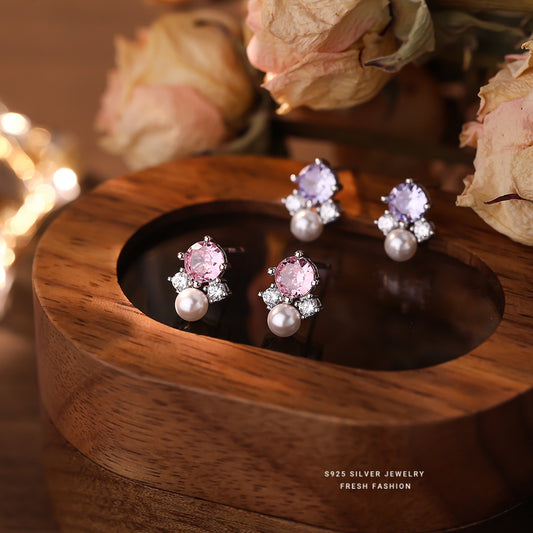 C廠 韓國韓版彩色鋯石珍珠S925純銀耳環 批發 折扣@洽客服 26.01.W1「E5997」