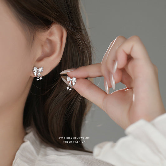 C廠 韓國韓版鋯石蝴蝶結S999純銀耳環 批發 折扣@洽客服 25.11.W3「E4162」