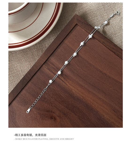 C廠 韓國韓版雙層疊戴珍珠S925純銀手鍊 批發 折扣@洽客服 26.01.W1「YL0125」