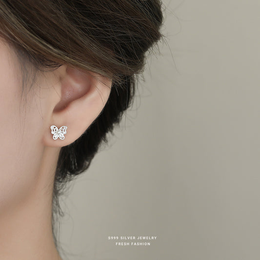C廠 韓國韓版鏤空仿珍珠蝴蝶S999純銀耳環 批發 折扣@洽客服 26.01.W1「E6045」