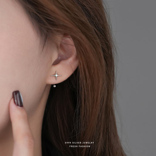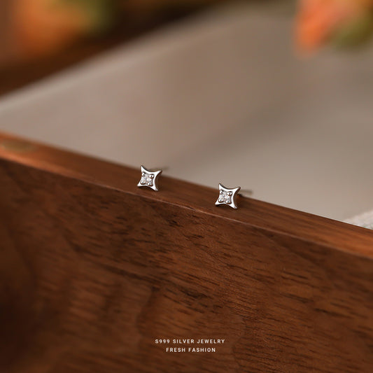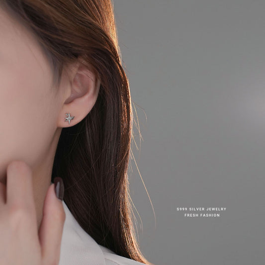 C廠 韓系輕奢四芒星s999純銀耳環 批發 折扣@洽客服 25.08.W3「E5210」