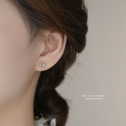 C廠 韓系閃鑽八芒星鏤空愛心s999純銀耳環 批發 折扣@洽客服 25.08.W3「E5221」