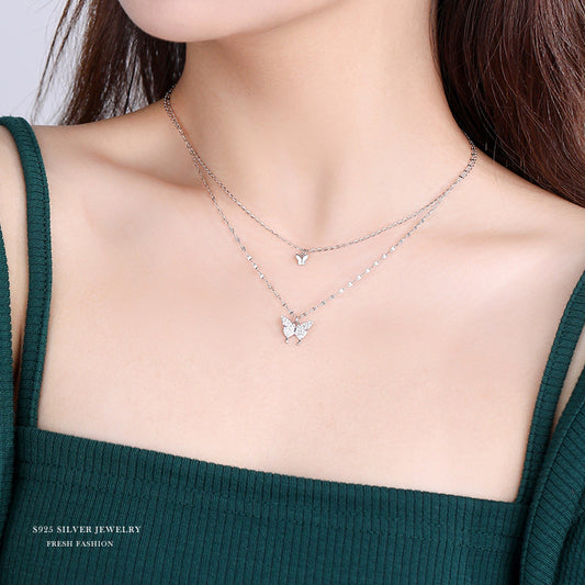 C廠 韓國韓版蝴蝶雙層 S925純銀項鍊批發 折扣@洽客服 26.03.W3「A866A」
