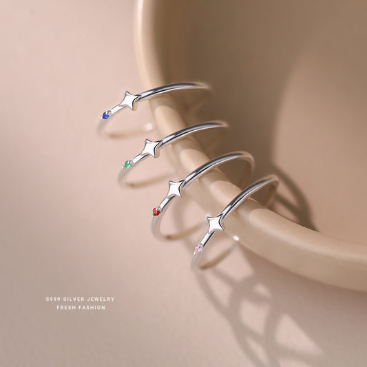 C廠 韓國韓系極簡彩鋯細圈芒星S999純銀戒指 批發 折扣@洽客服 25.10.W1「K2351」