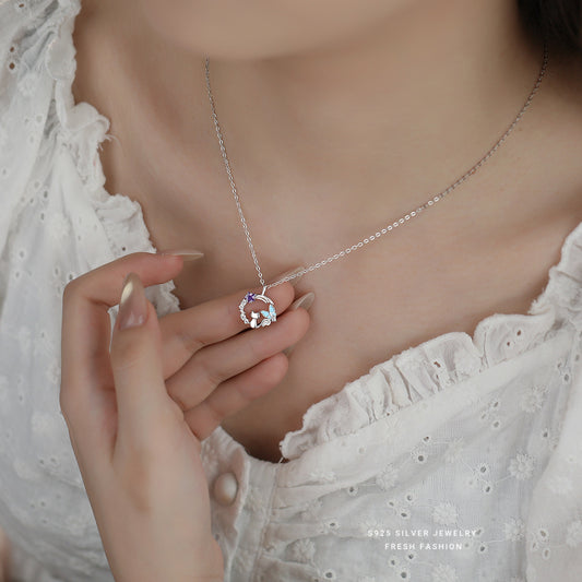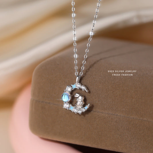 C廠 S925純銀| 炫彩星月兔子吊墜項鍊 批發 折扣@洽客服 26.01.W2「YA0554」
