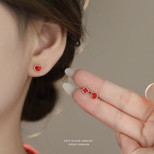 C廠 S999純銀 |紅色四葉草耳環 批發 折扣@洽客服 26.01.W2「E6061 E6062 E6063」