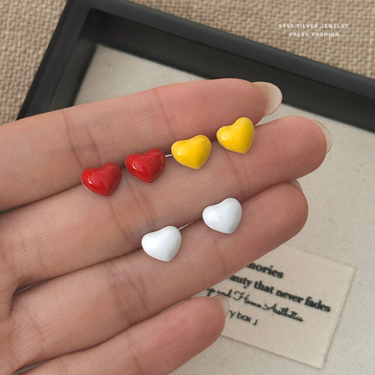 C廠 999純銀|韓國韓版彩色愛心耳環 26.02.W1「E6066」