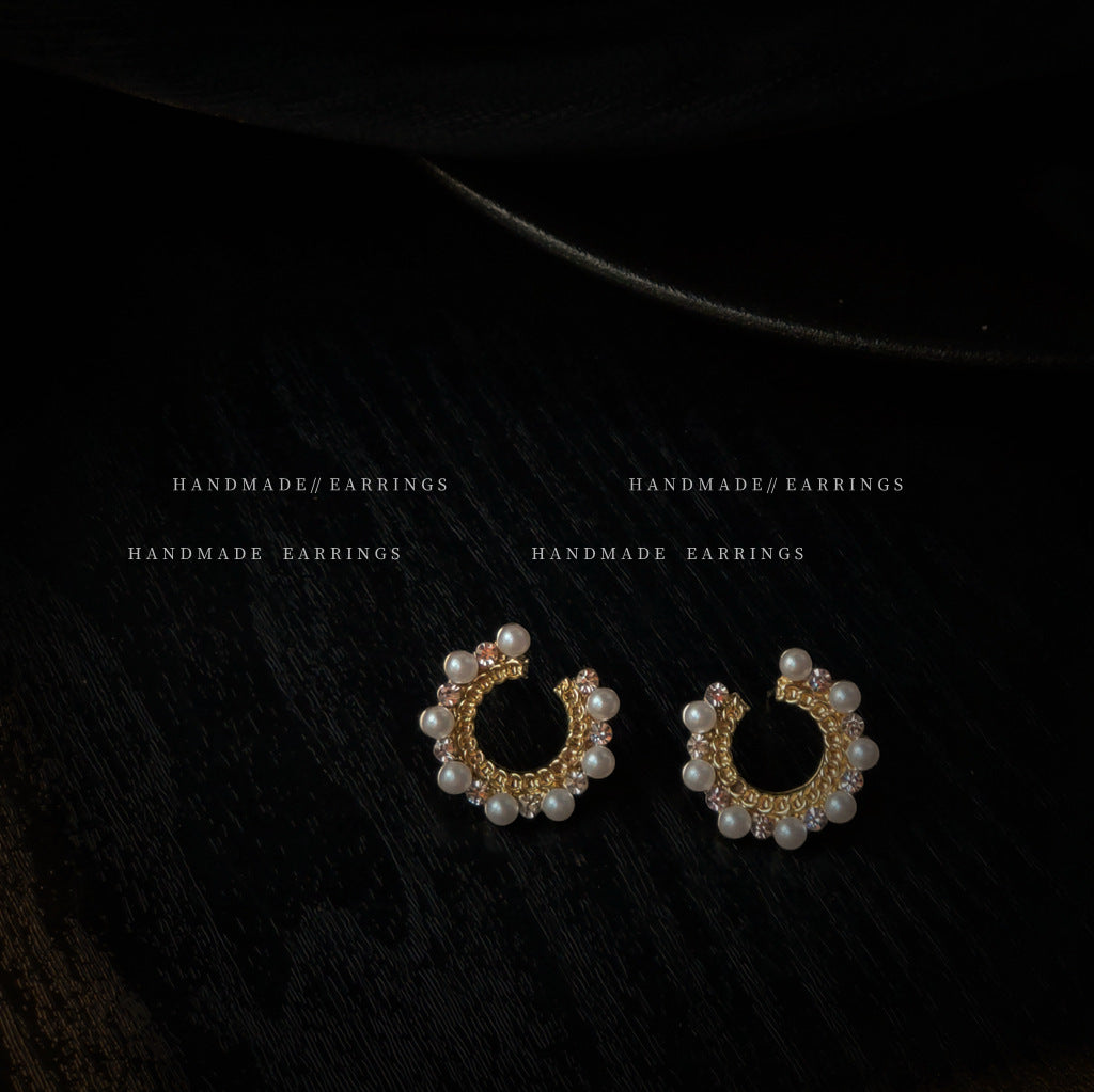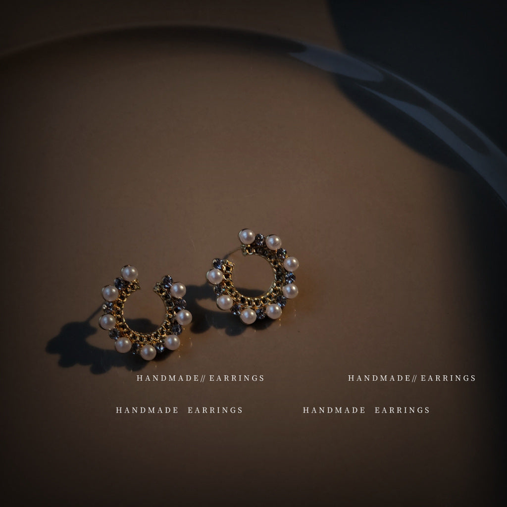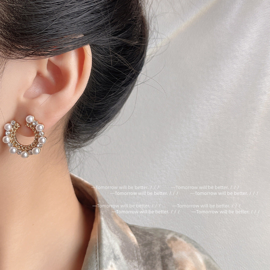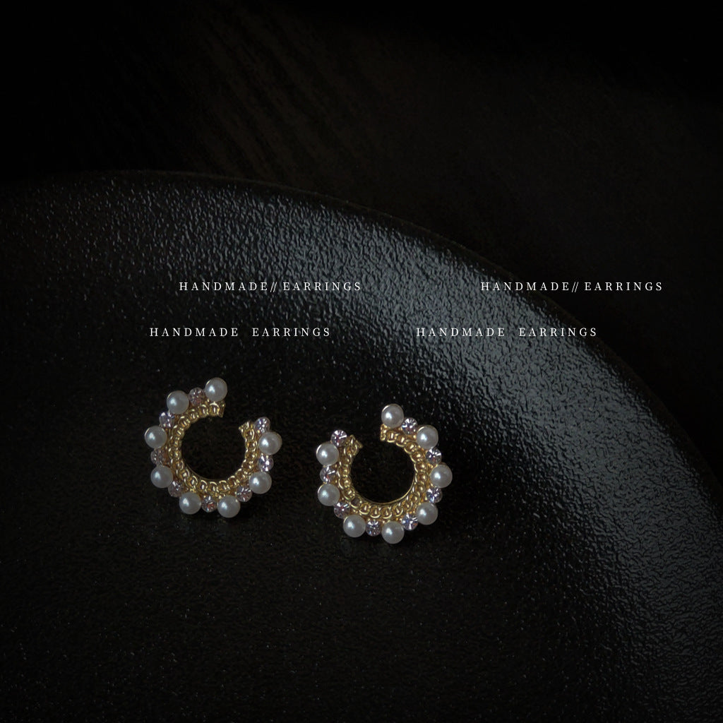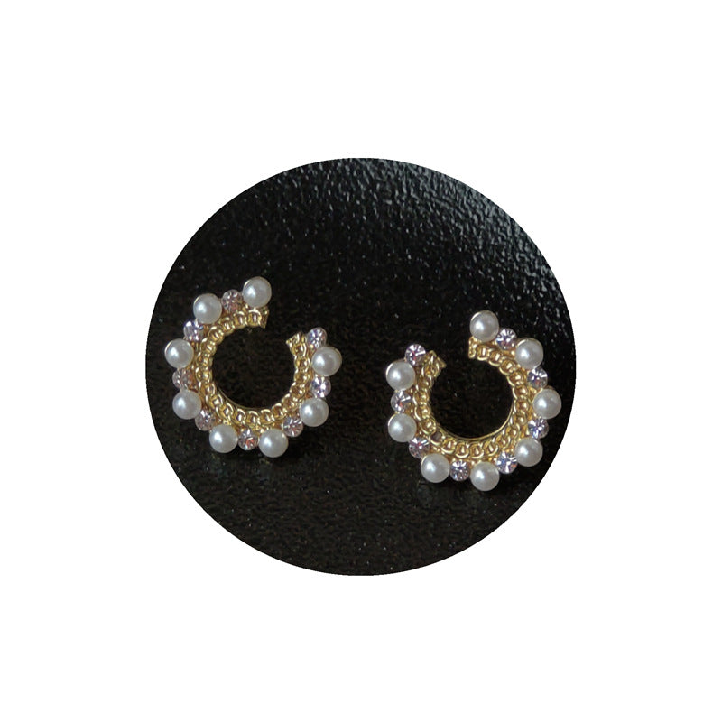 A廠 日韓款 C型幾何鑲珍珠電鍍14K銀針耳環 批發 折扣@洽客服 25.10.W5「1397」