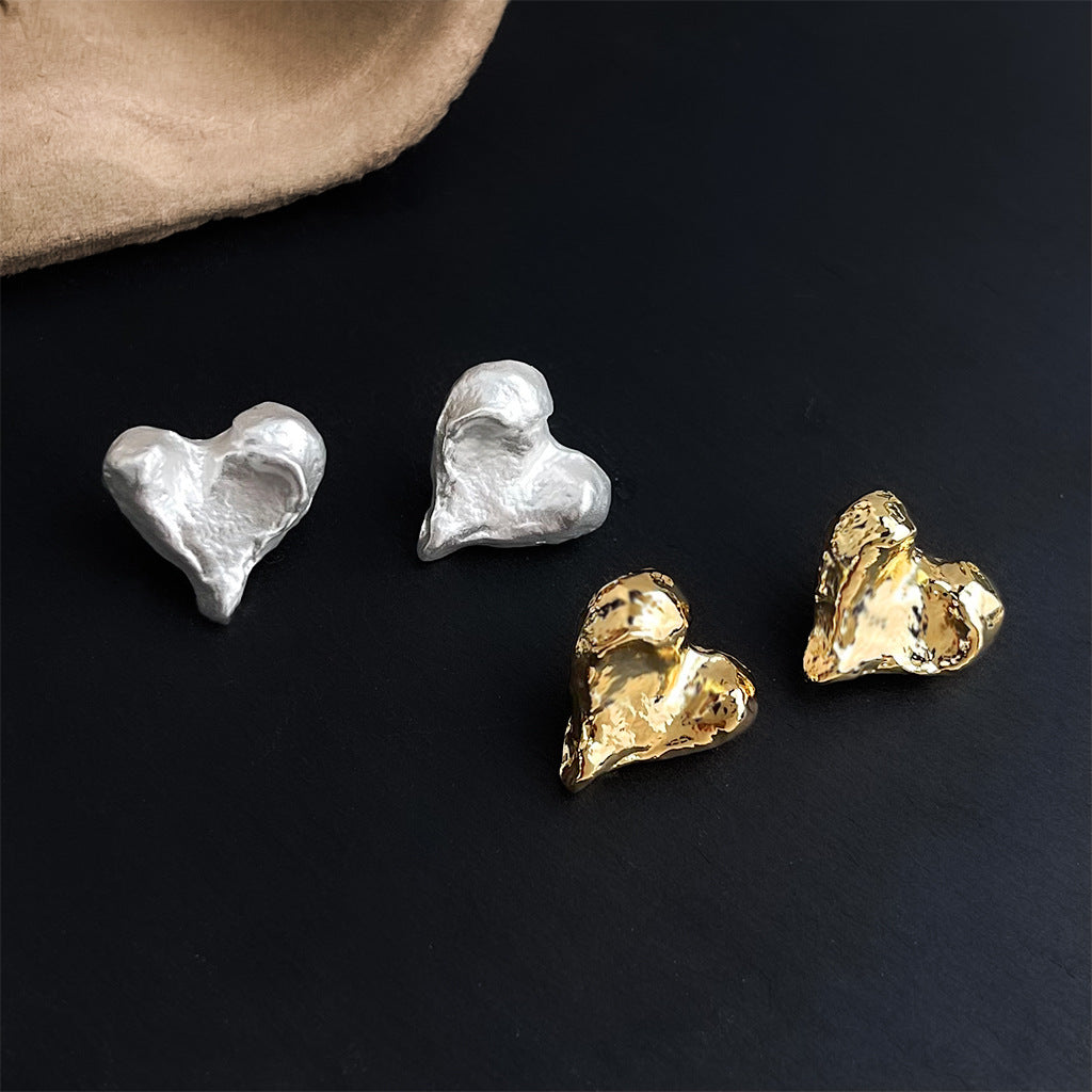 A廠 日韓款 不規則褶皺愛心銀針耳環 批發 折扣@洽客服 25.09.W2「2151-2152」