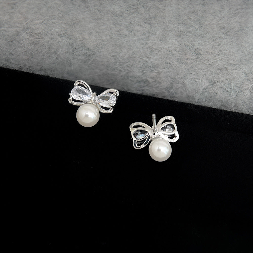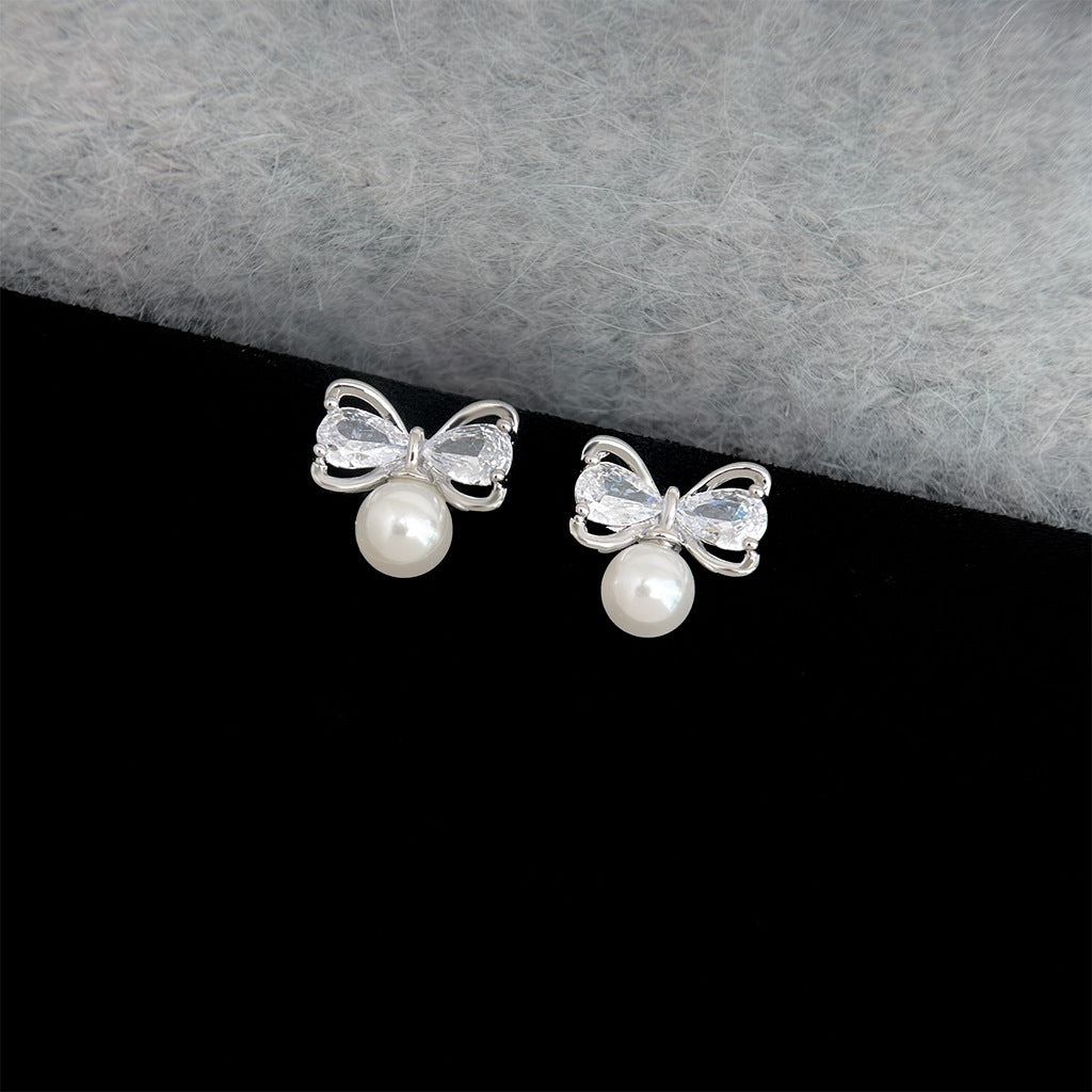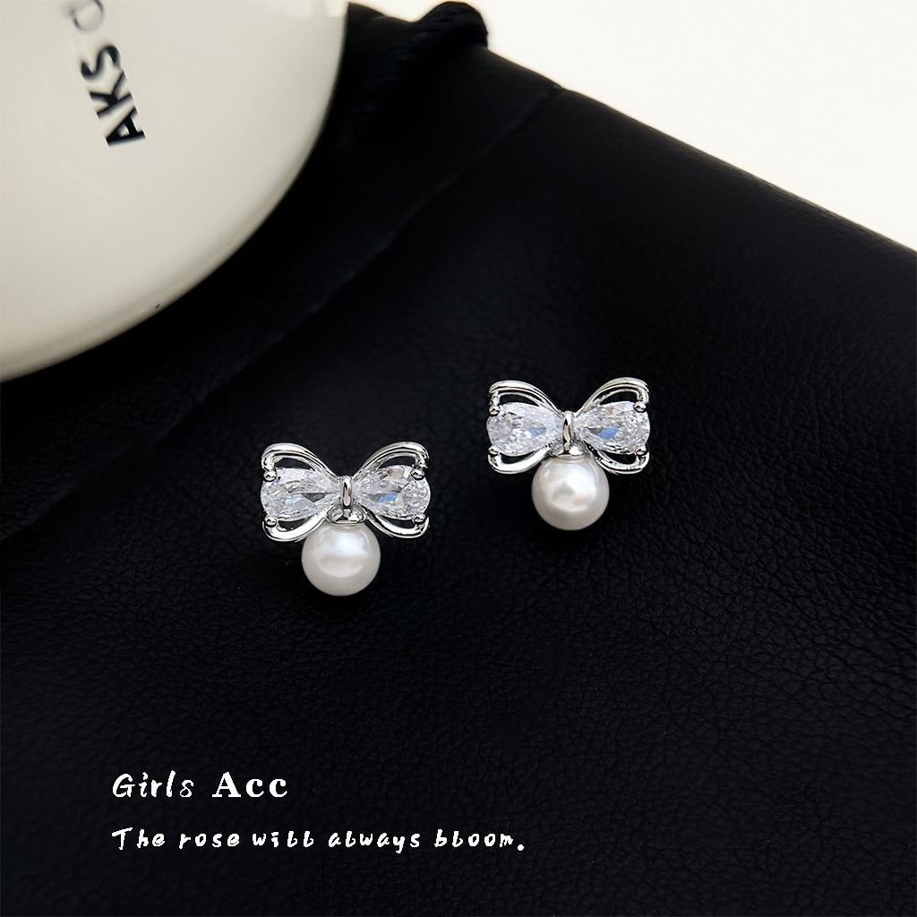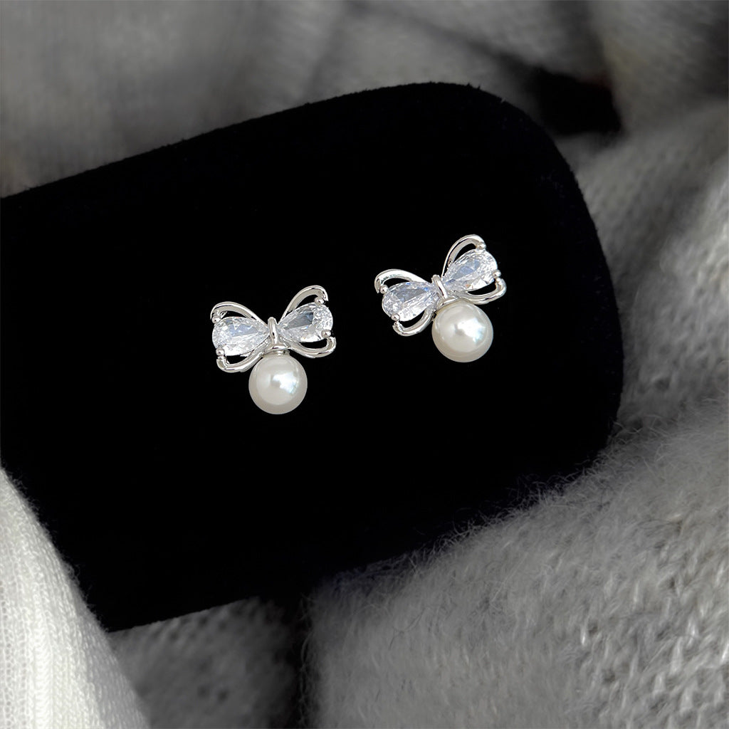 A廠 日韓小香風蝴蝶結珍珠銀針耳環 批發 折扣@洽客服 25.12.W3「2241」
