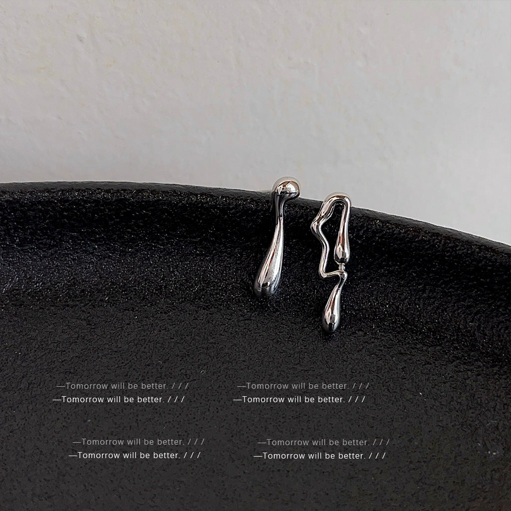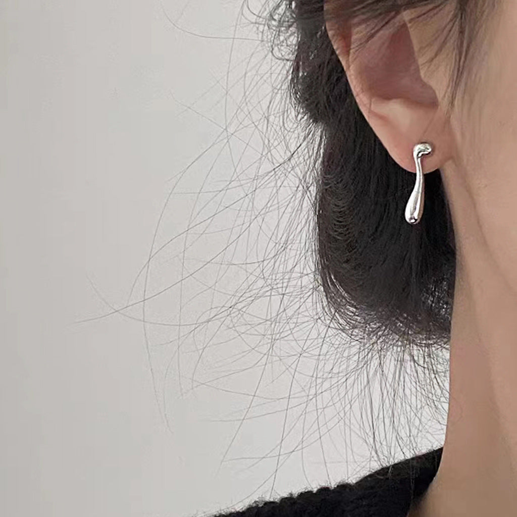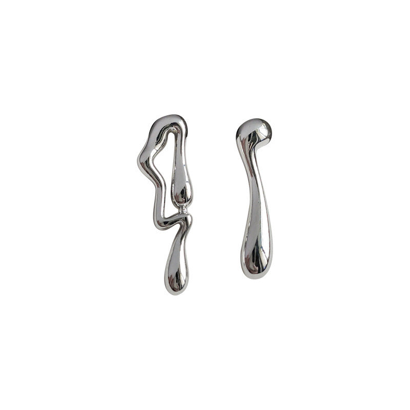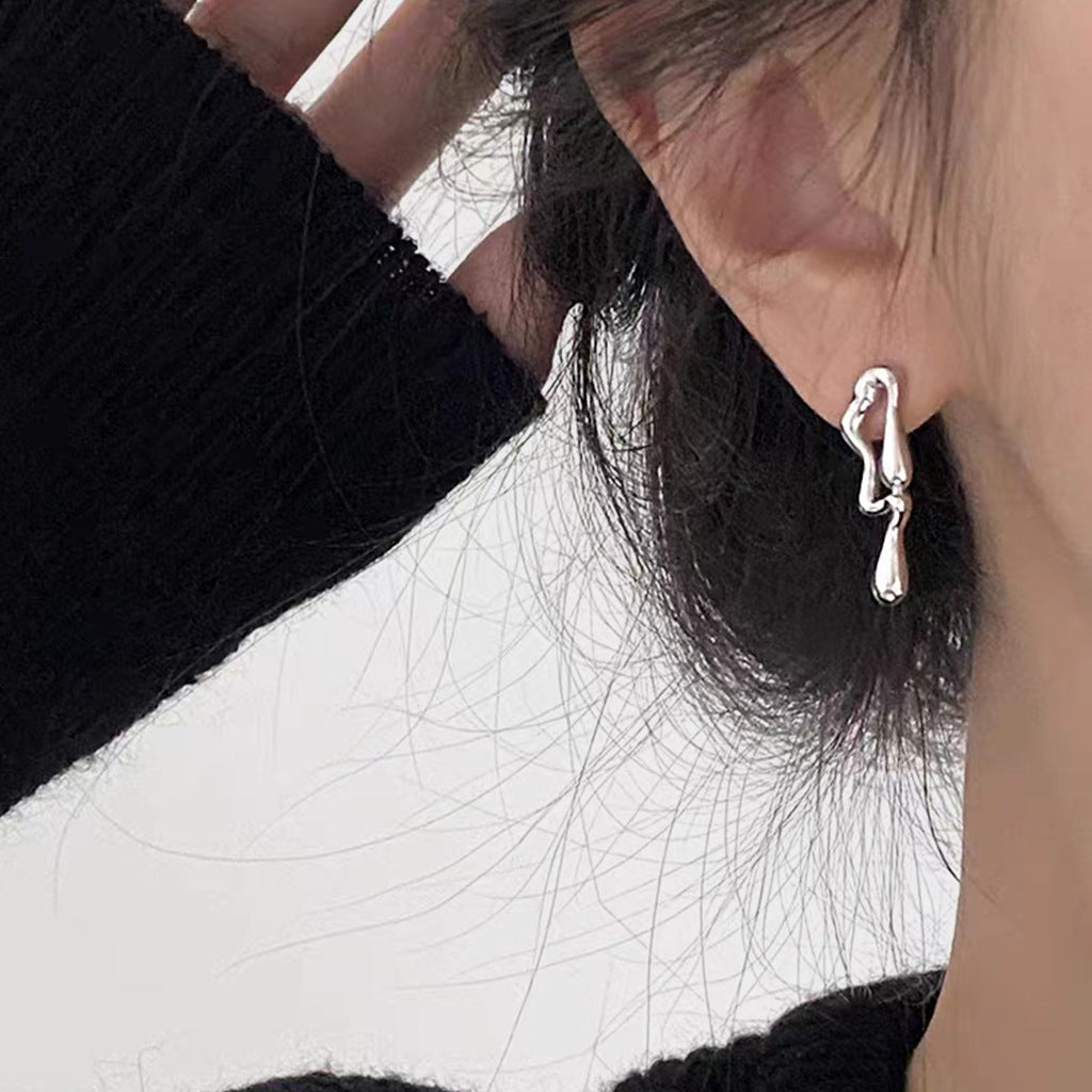 A廠 日韓款 金屬感液態水滴形銀針耳環 批發 折扣@洽客服 25.11.W2「2309」