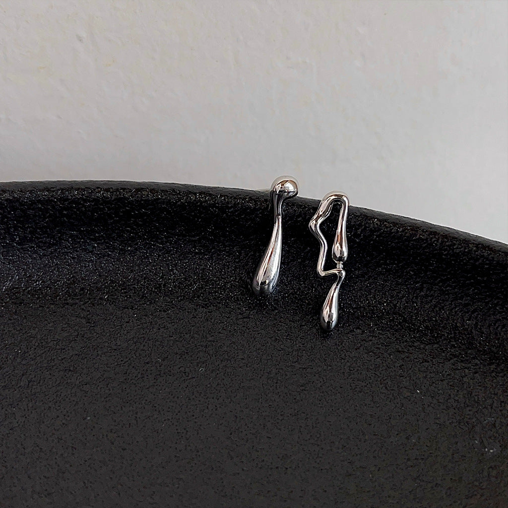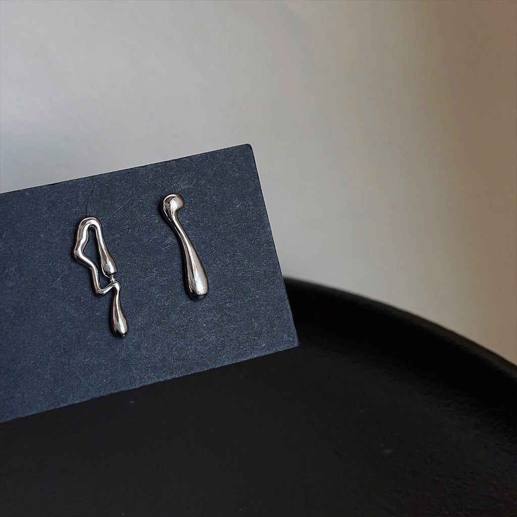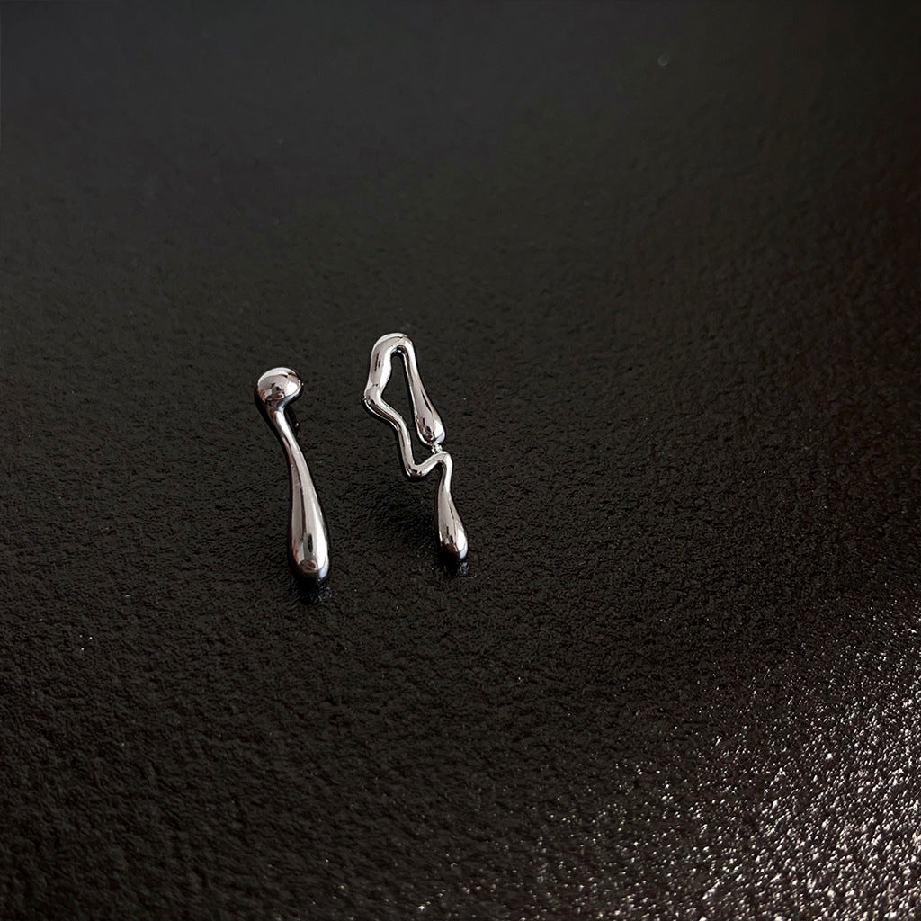 A廠 日韓款 金屬感液態水滴形銀針耳環 批發 折扣@洽客服 25.11.W2「2309」