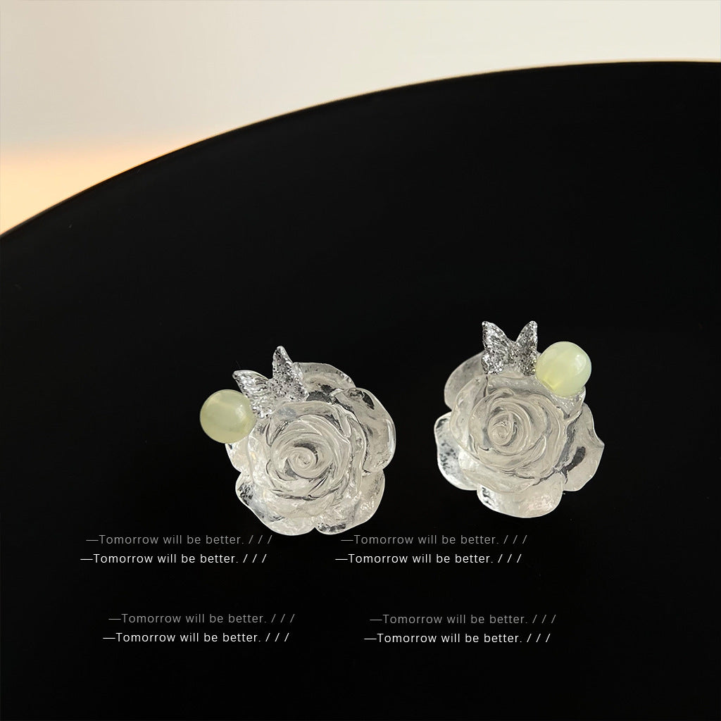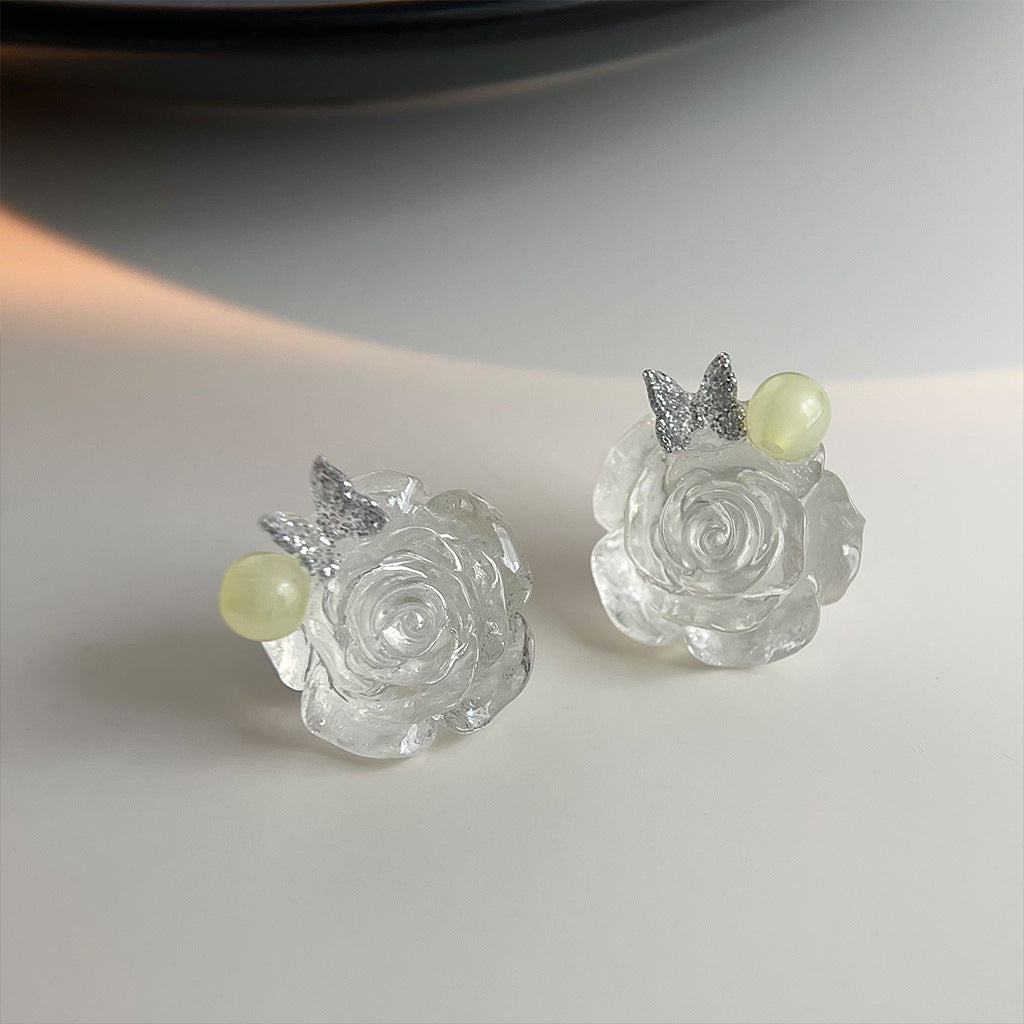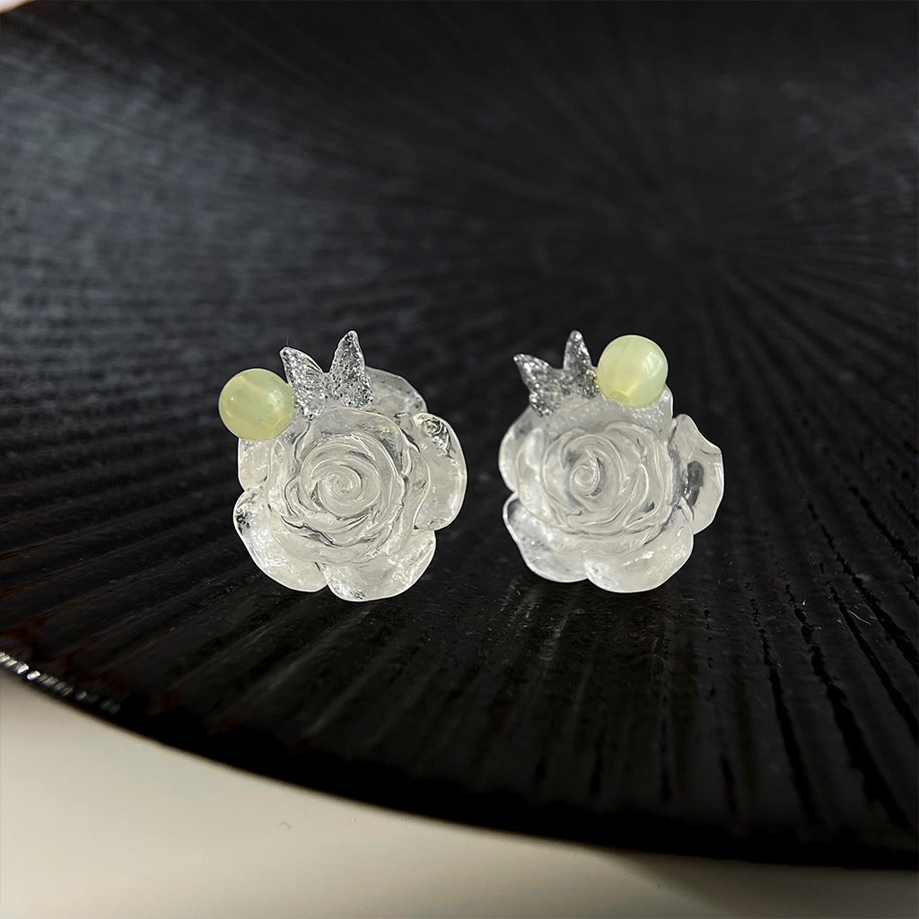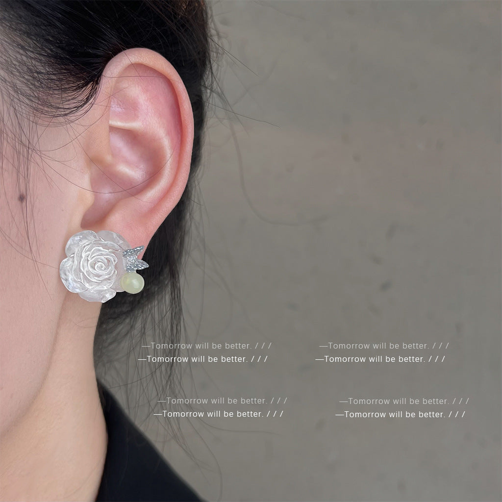 A廠 日韓款 甜美樹脂玫瑰花銀針耳環 批發 折扣@洽客服 25.11.W1「2715」