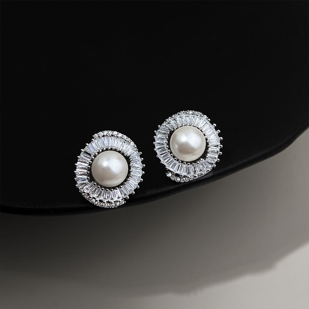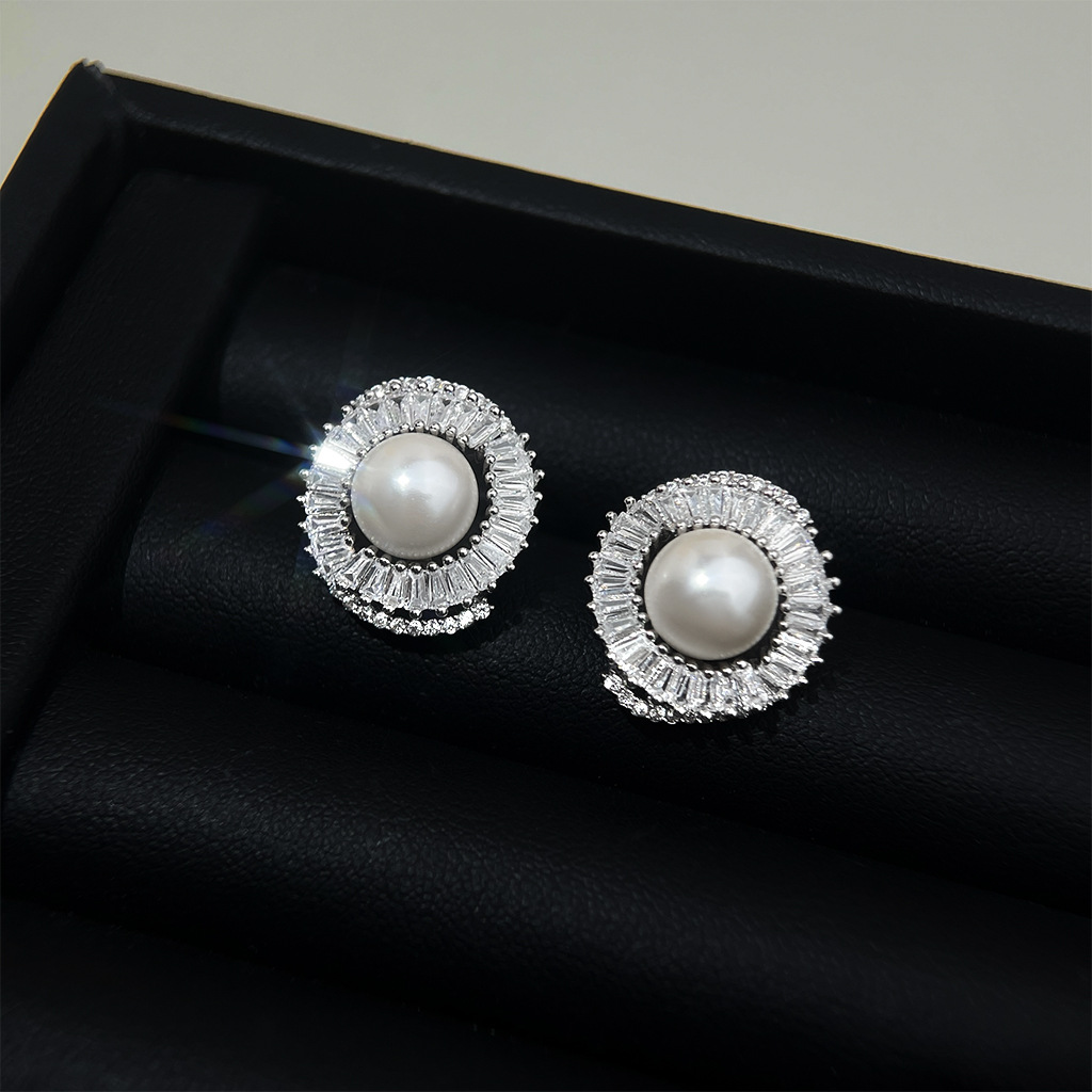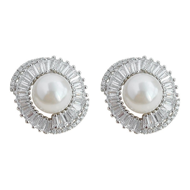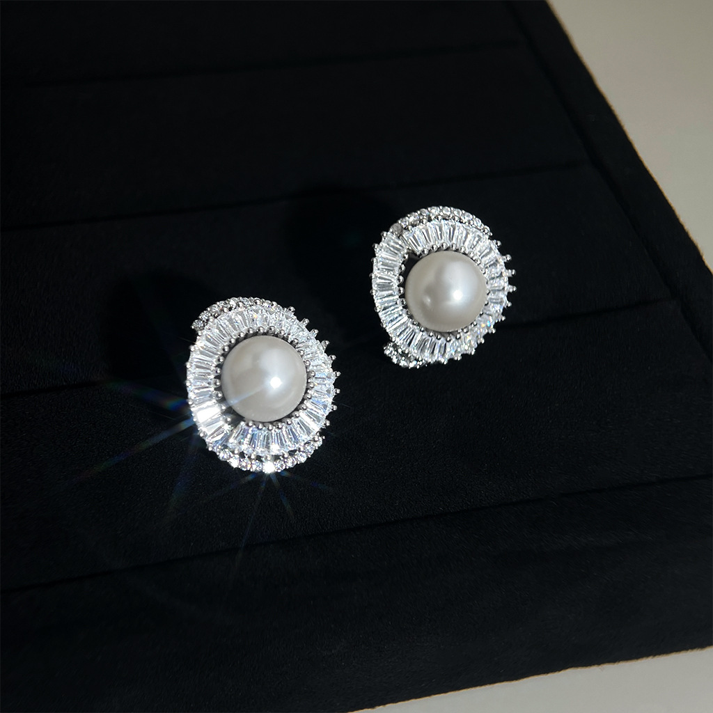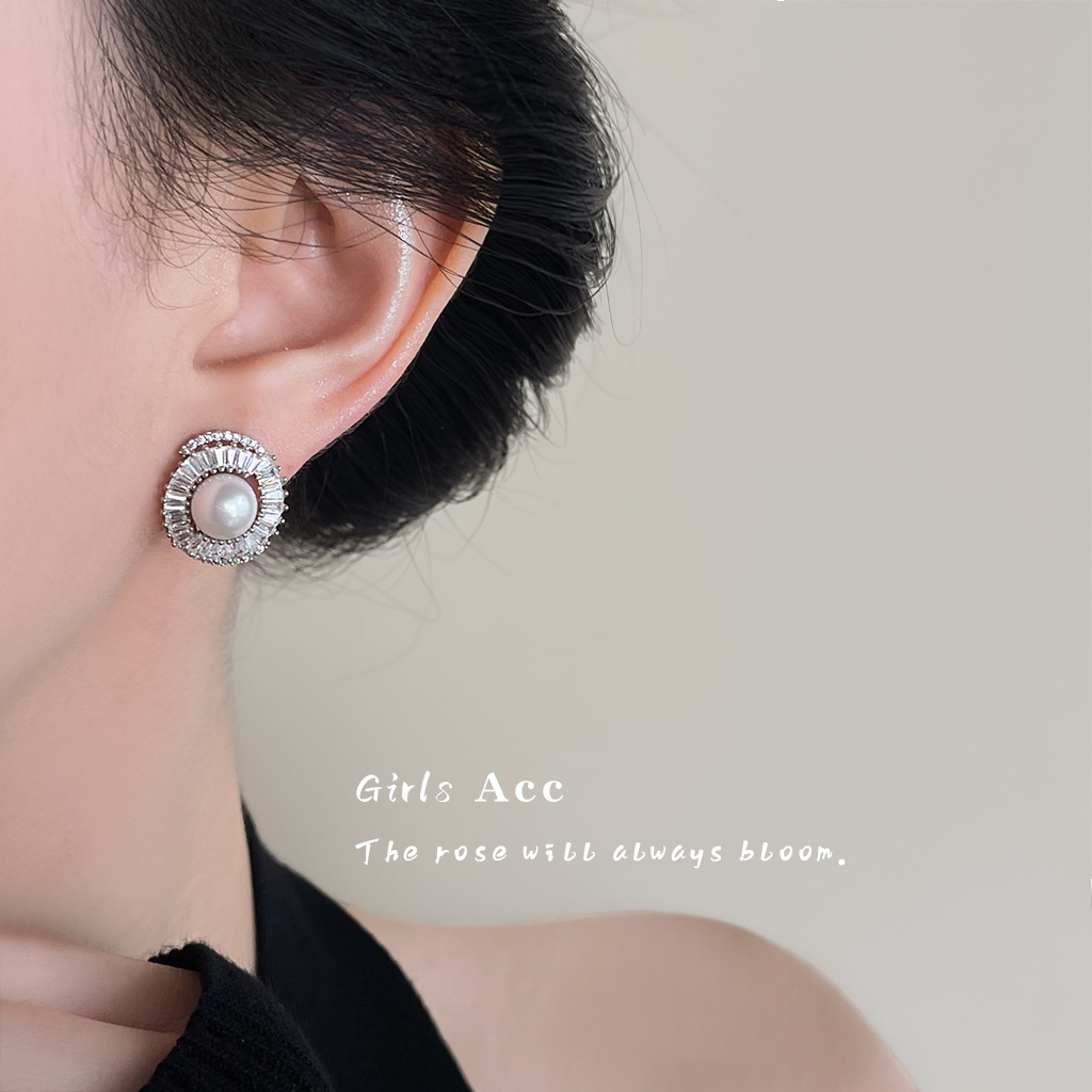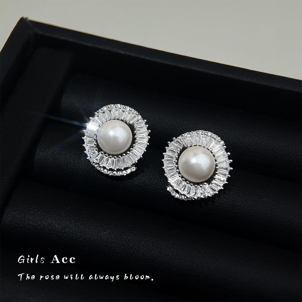 A廠 韓系款輕奢微鑲鋯石珍珠銀針銀針耳環 批發 折扣@洽客服 25.12.W2「3198」