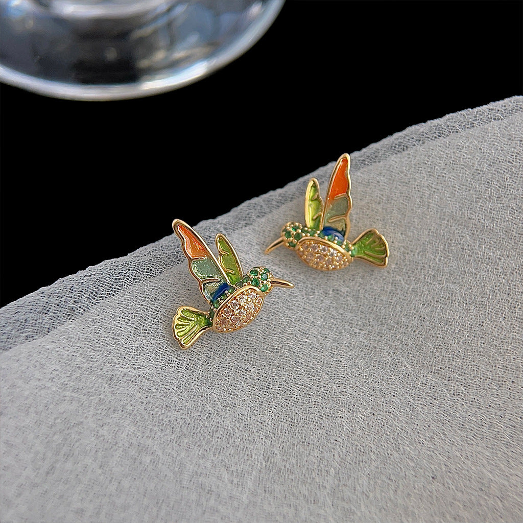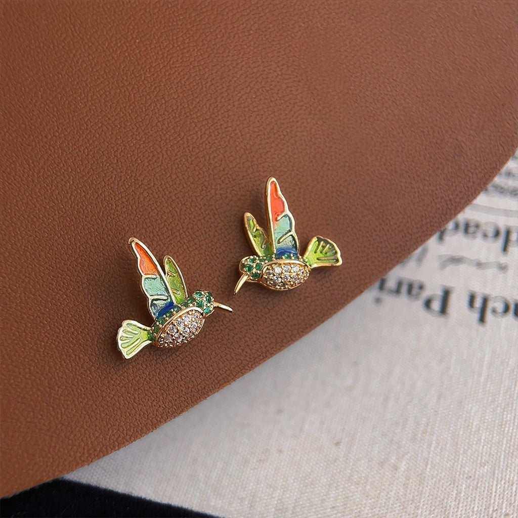 A廠 銅|日韓款立體琺瑯滴油彩色小鳥銀針耳環 批發 折扣@洽客服 26.02.W3「3241」