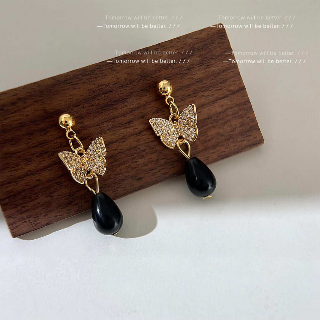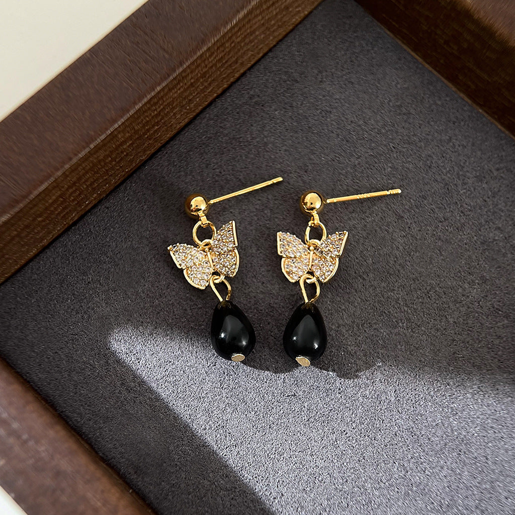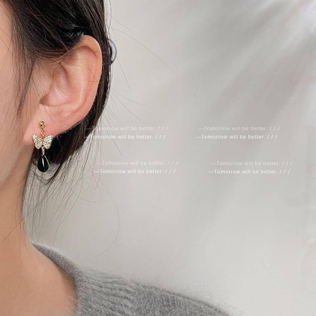 A廠 日韓款蝴蝶水滴形長銀針耳環 飾品批發 折扣@洽客服 25.10.W2「3244」