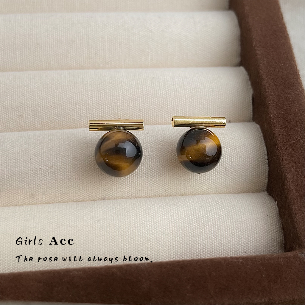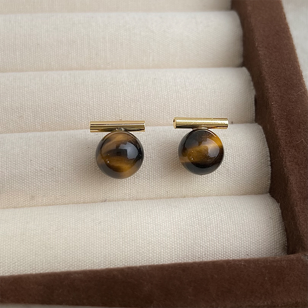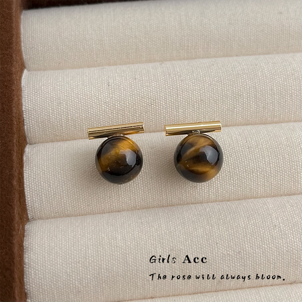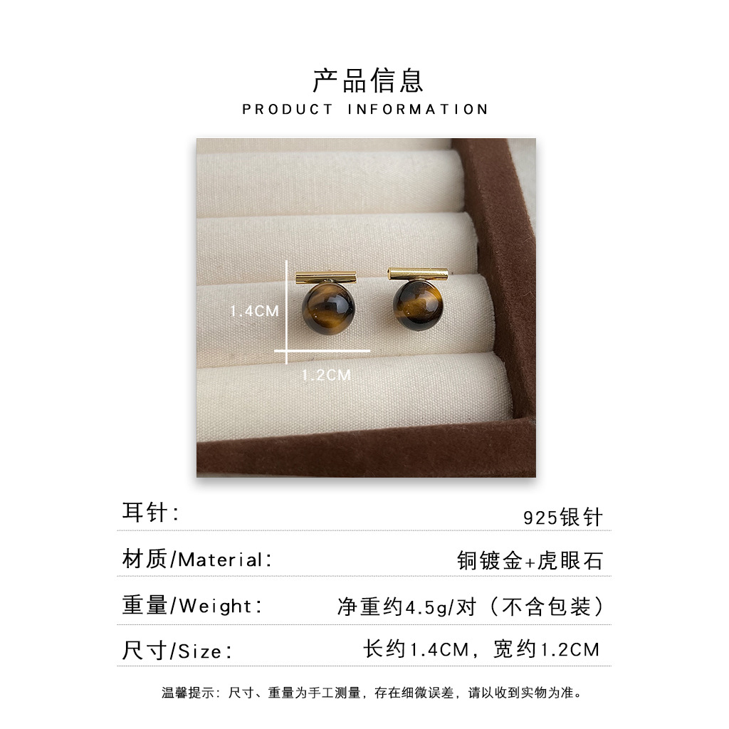 A廠 環保銅 | 韓系系簡約一字虎眼石銀針耳環 批發 折扣@洽客服 26.01.W3「3284」