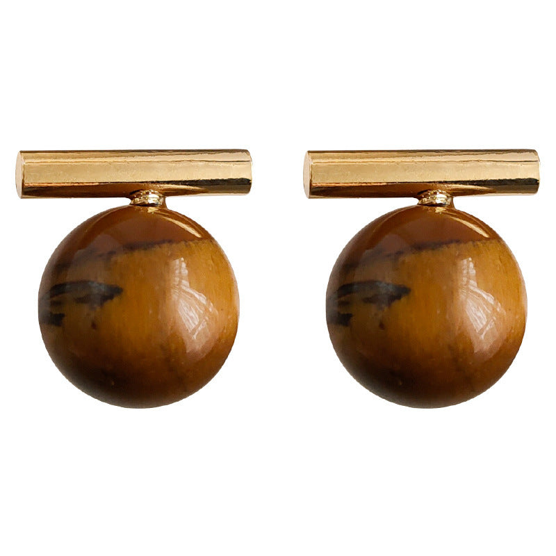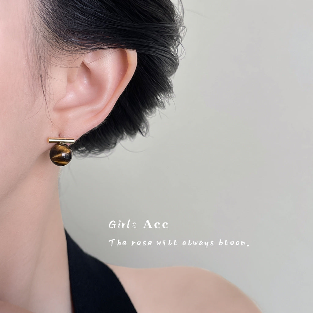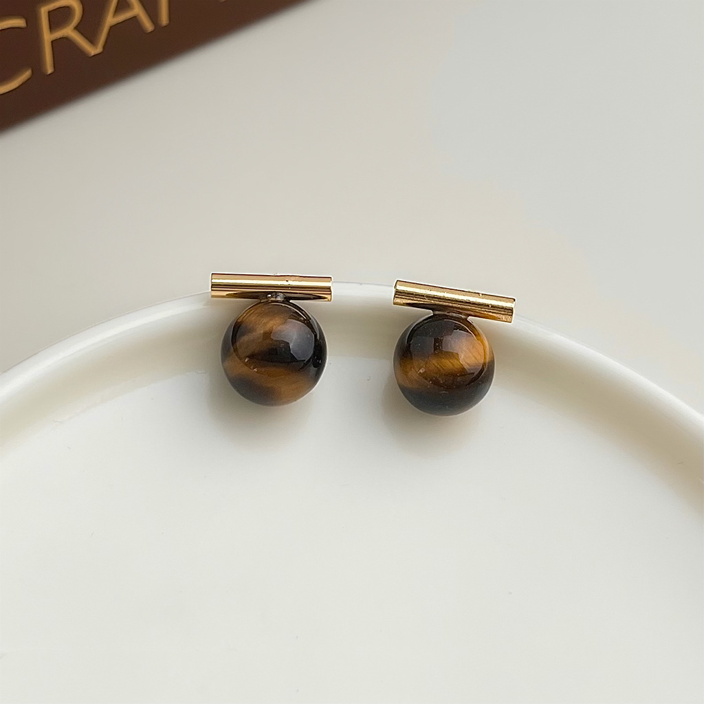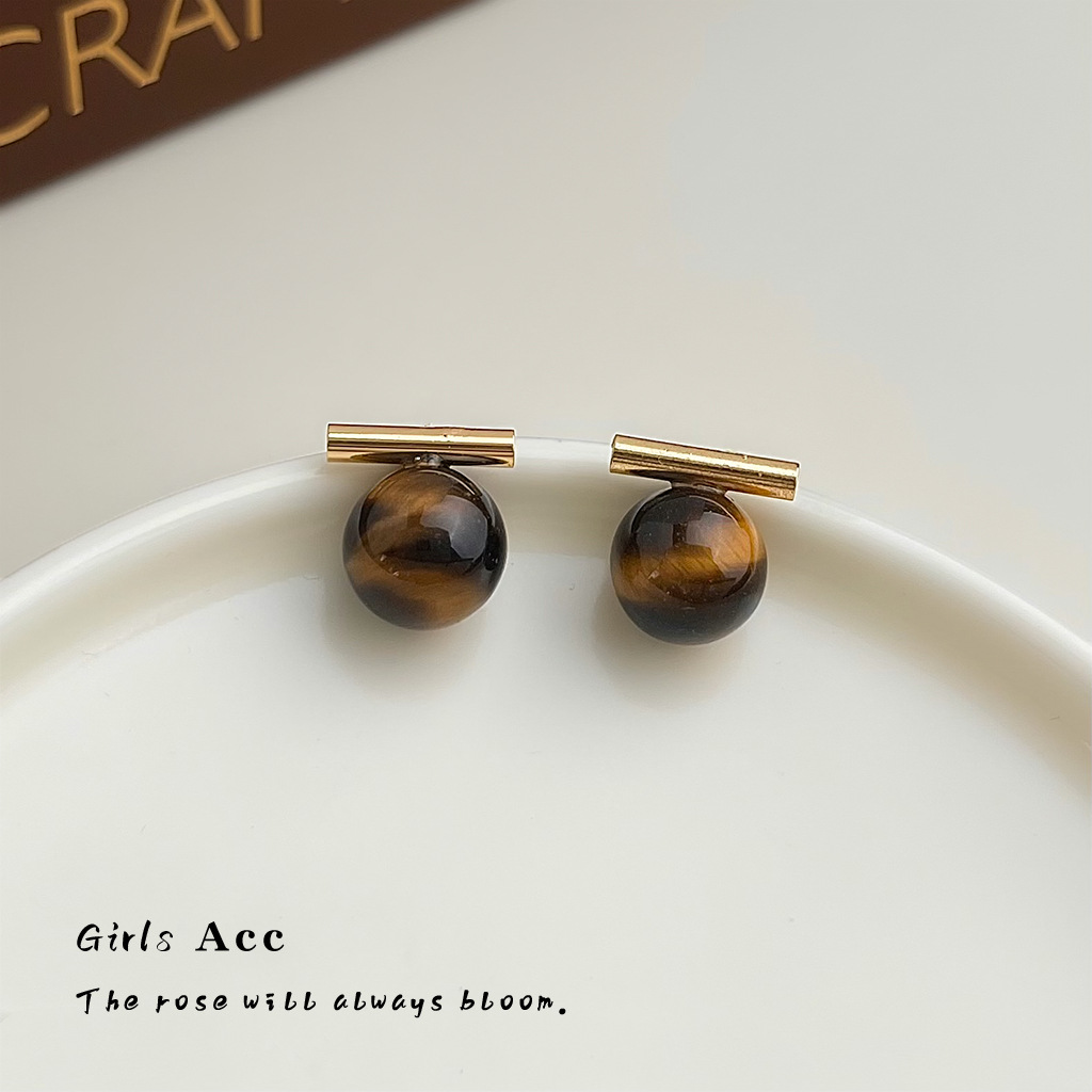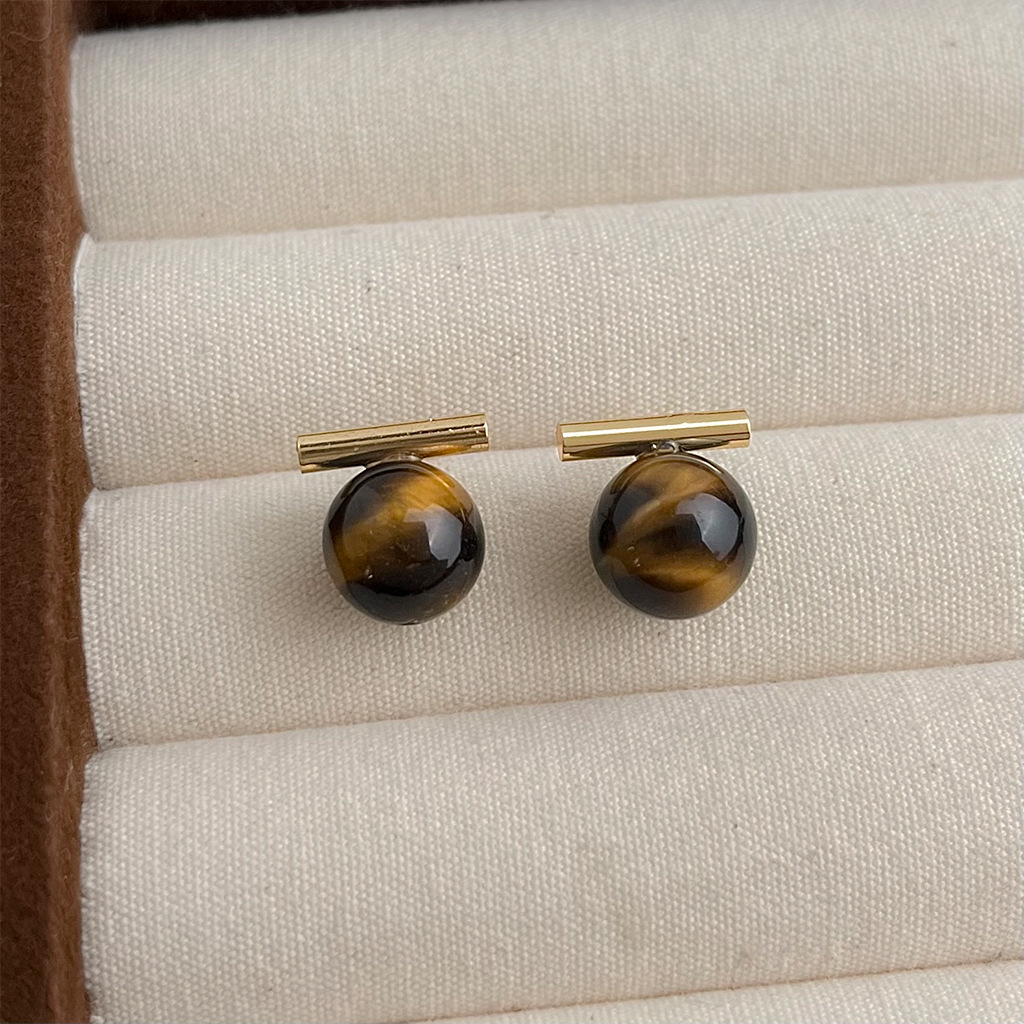 A廠 環保銅 | 韓系系簡約一字虎眼石銀針耳環 批發 折扣@洽客服 26.01.W3「3284」