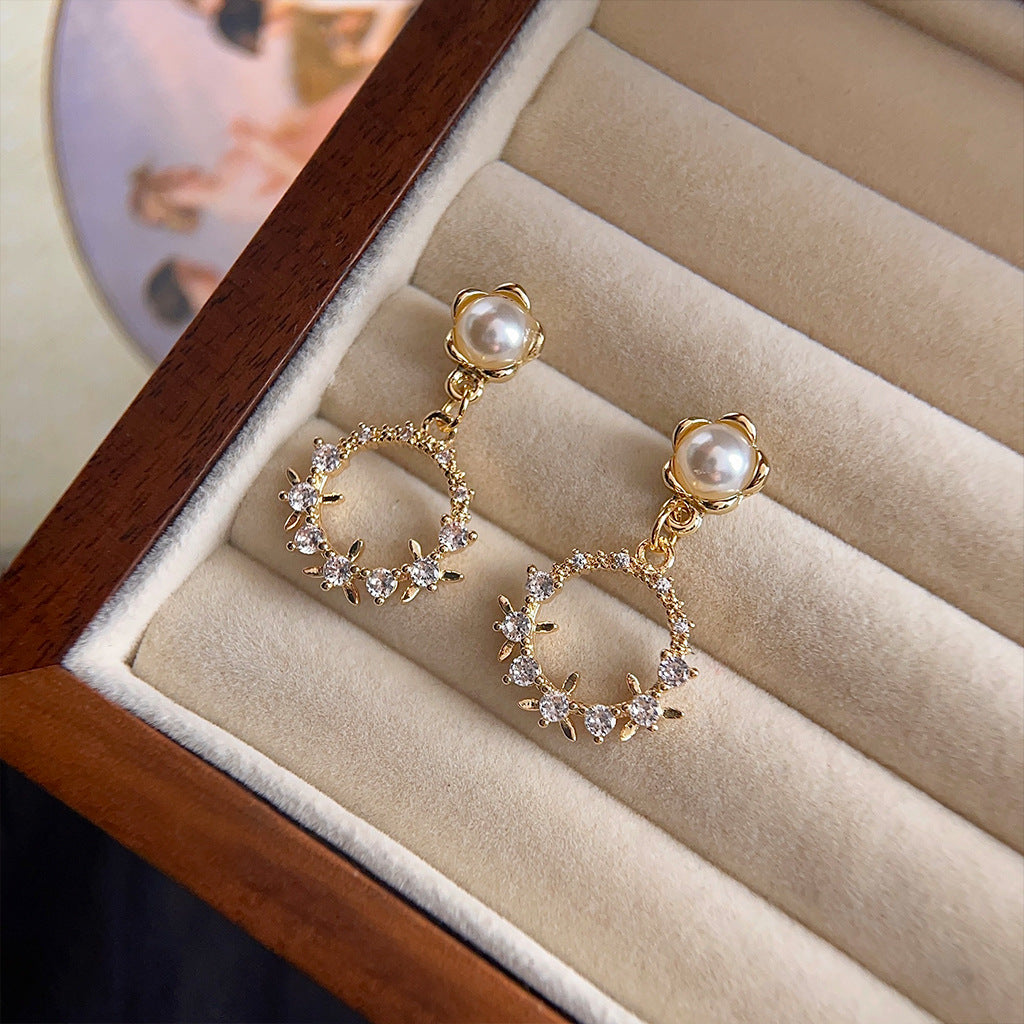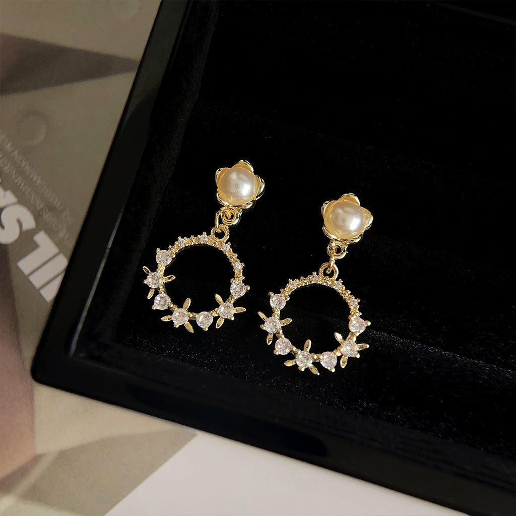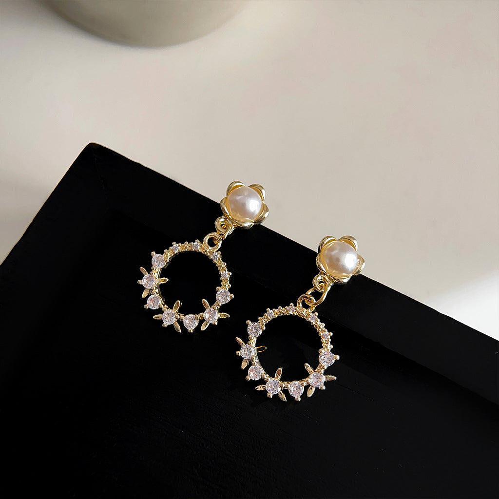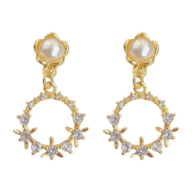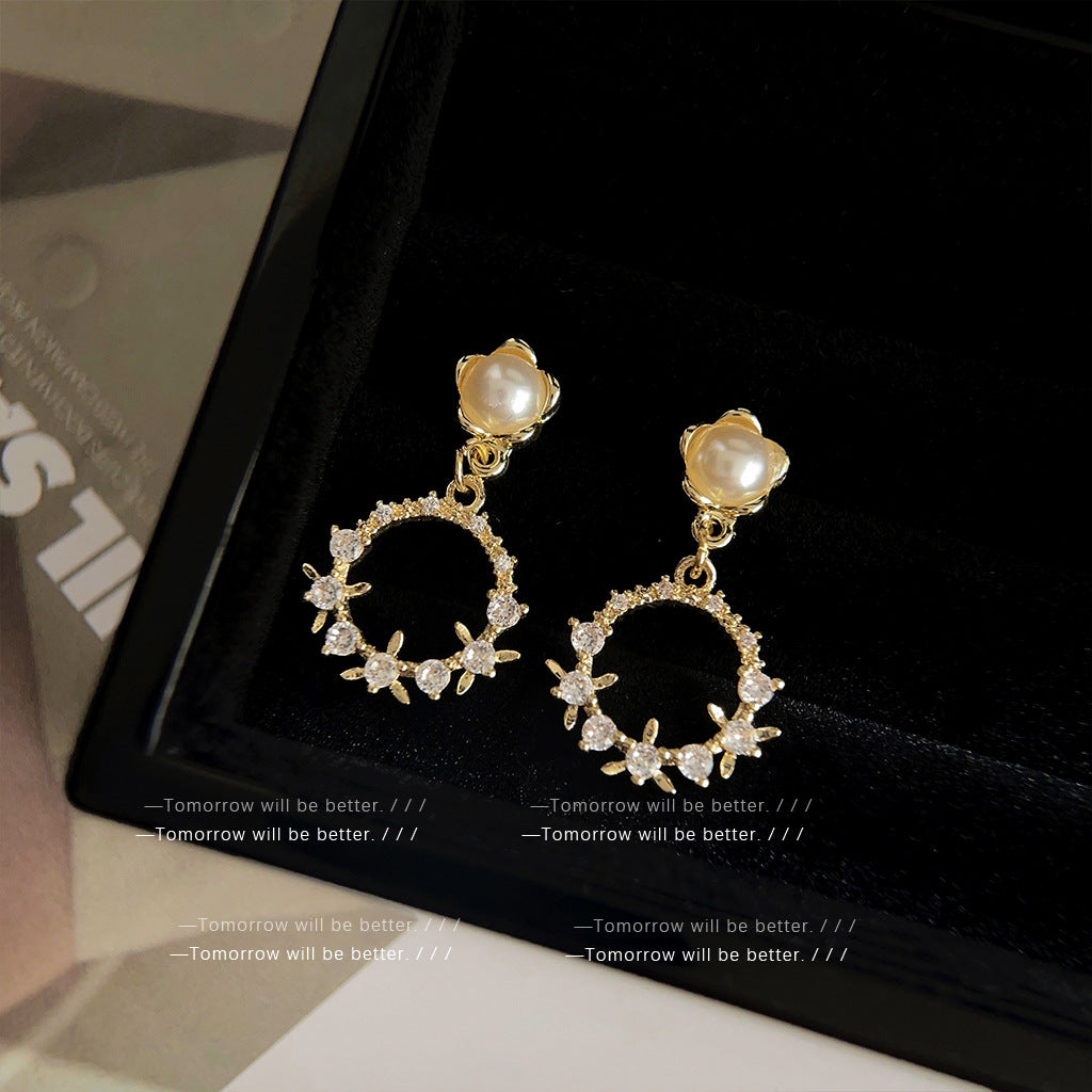 A廠 韓系甜美珍珠微鑲鋯石銀針耳環 批發 折扣@洽客服 25.04.W2「3558」