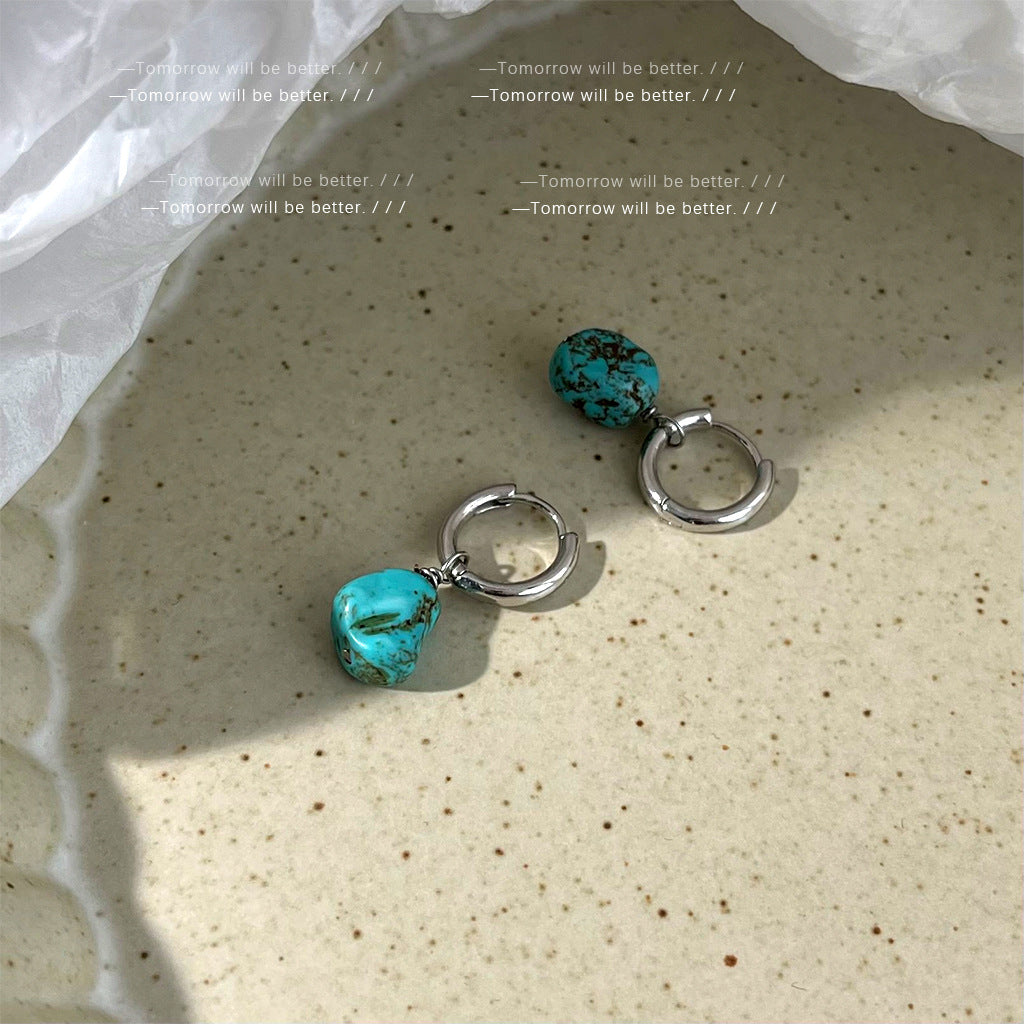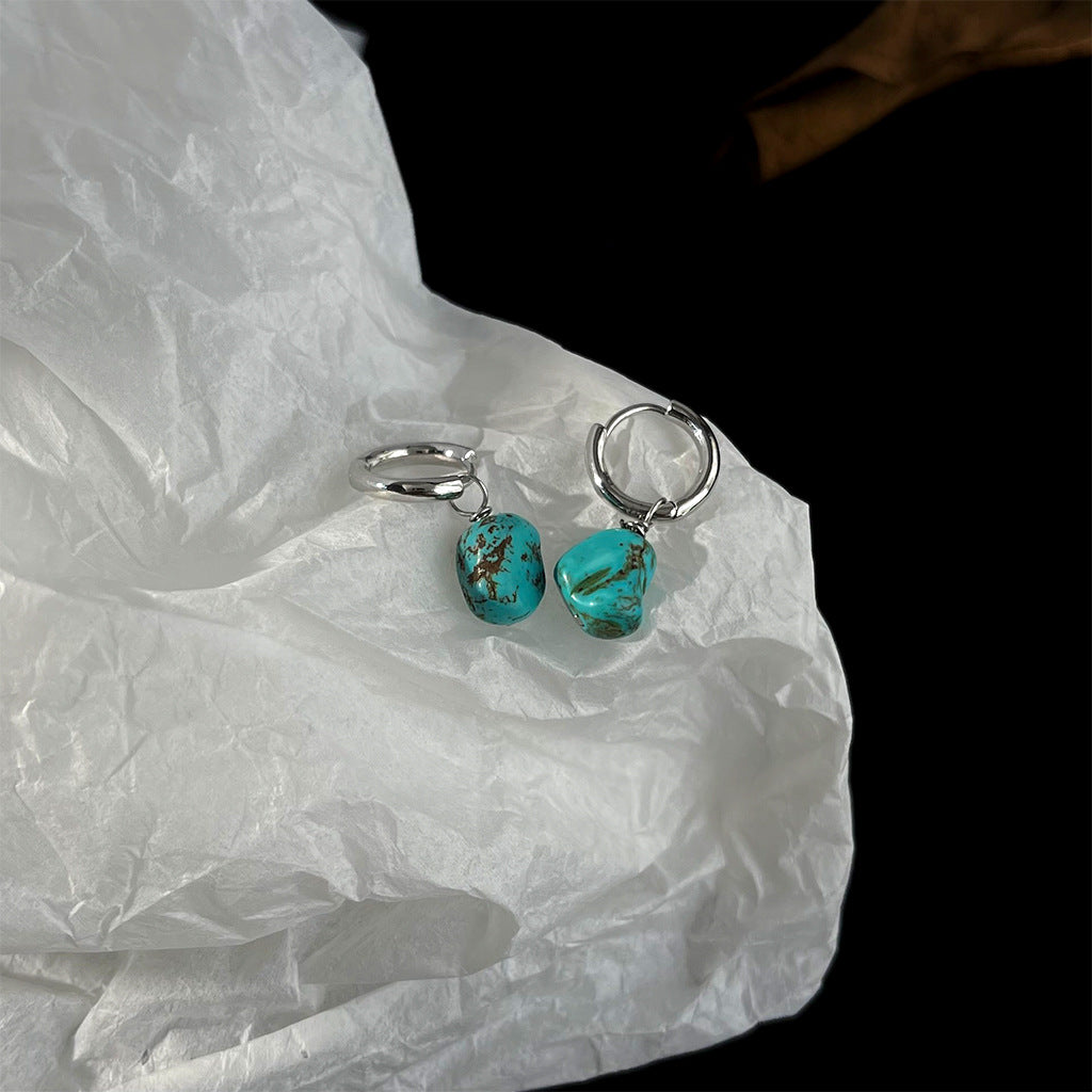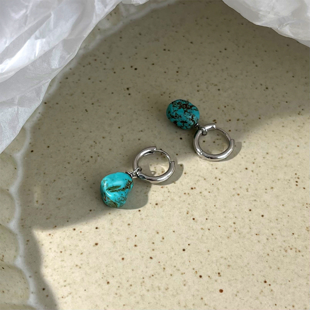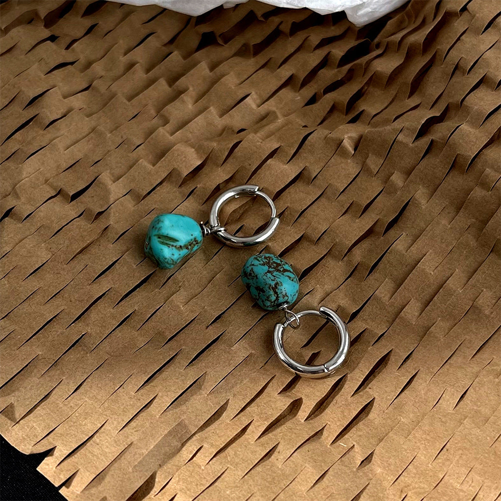 A廠 韓系款個性不規則綠松石銀針銀針耳環 批發 折扣@洽客服 25.12.W1「4307」